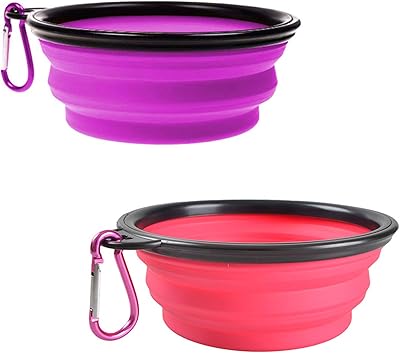 Portable Silicone Collapsible Dog Bowls, 2 Pack Dog Bowl Travel Collapsible Bowls Water Feeding Travel Bowl Cup Dish for Pet Dogs and Cats - with 2 Pack Carabiners