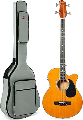 Best Choice Products Acoustic Electric Bass Guitar, Full Size 4 String, Fretted Bass Guitar wPadded Gig Bag - Aged Natural