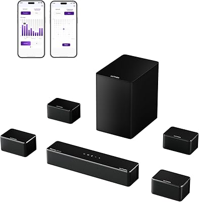 ULTIMEA 7.1Ch Soundbar with Dolby Atmos, APP Control, Surround Sound System for TV, 4 Wired Surround Speakers, Sound Bar for TV with 6.5 Wireless Subwoofer, Soundbar for TV, Poseidon D80 Upgraded